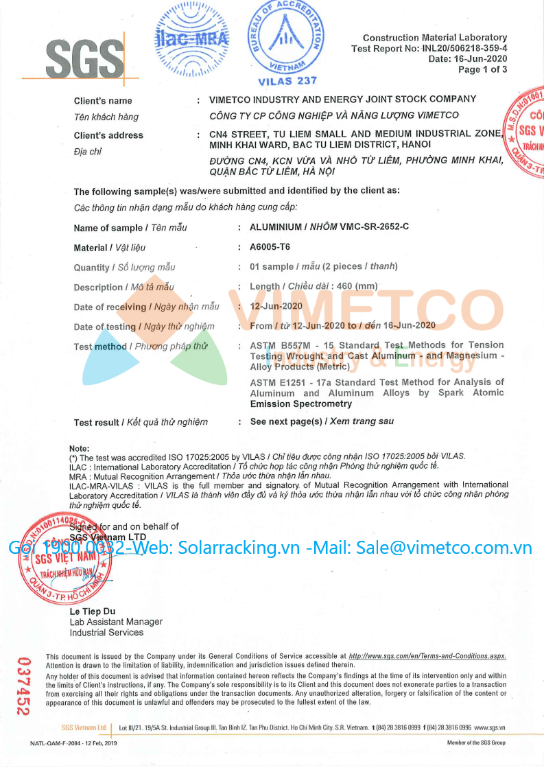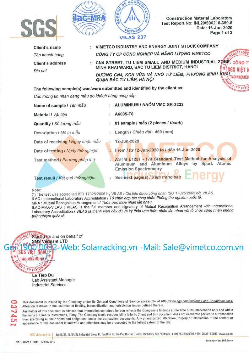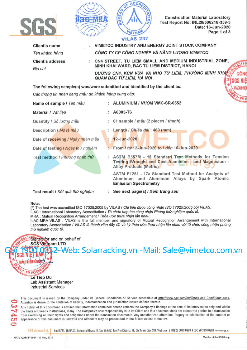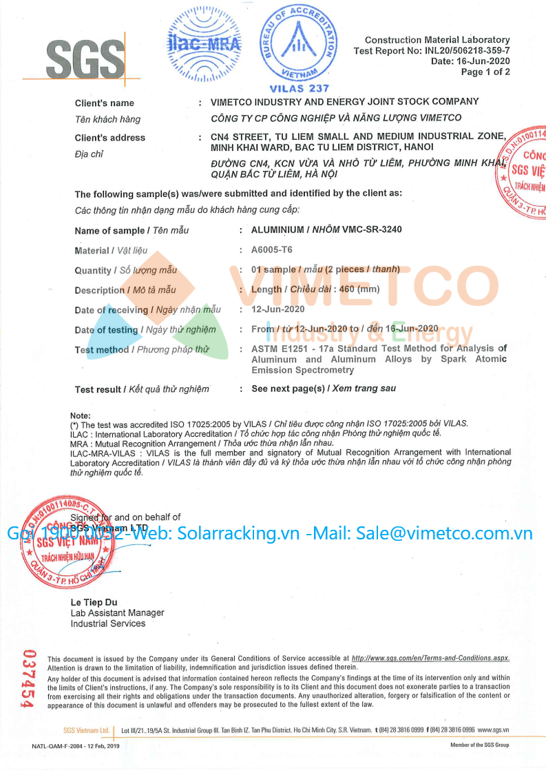 Vimetco Industry & Energy là nhà máy sản xuất chuyên cung cấp kết cấu phụ kiện lắp đặt các hệ thống điện mặt trời cho các dự án lớn nhỏ. Sản lượng cung cấp 120 Mw/Tháng rất mong được hợp tác với các dự án lớn nhỏ. sản phẩm đạt được hầu hết các chỉ tiêu chứng nhận của SGS, TUV: