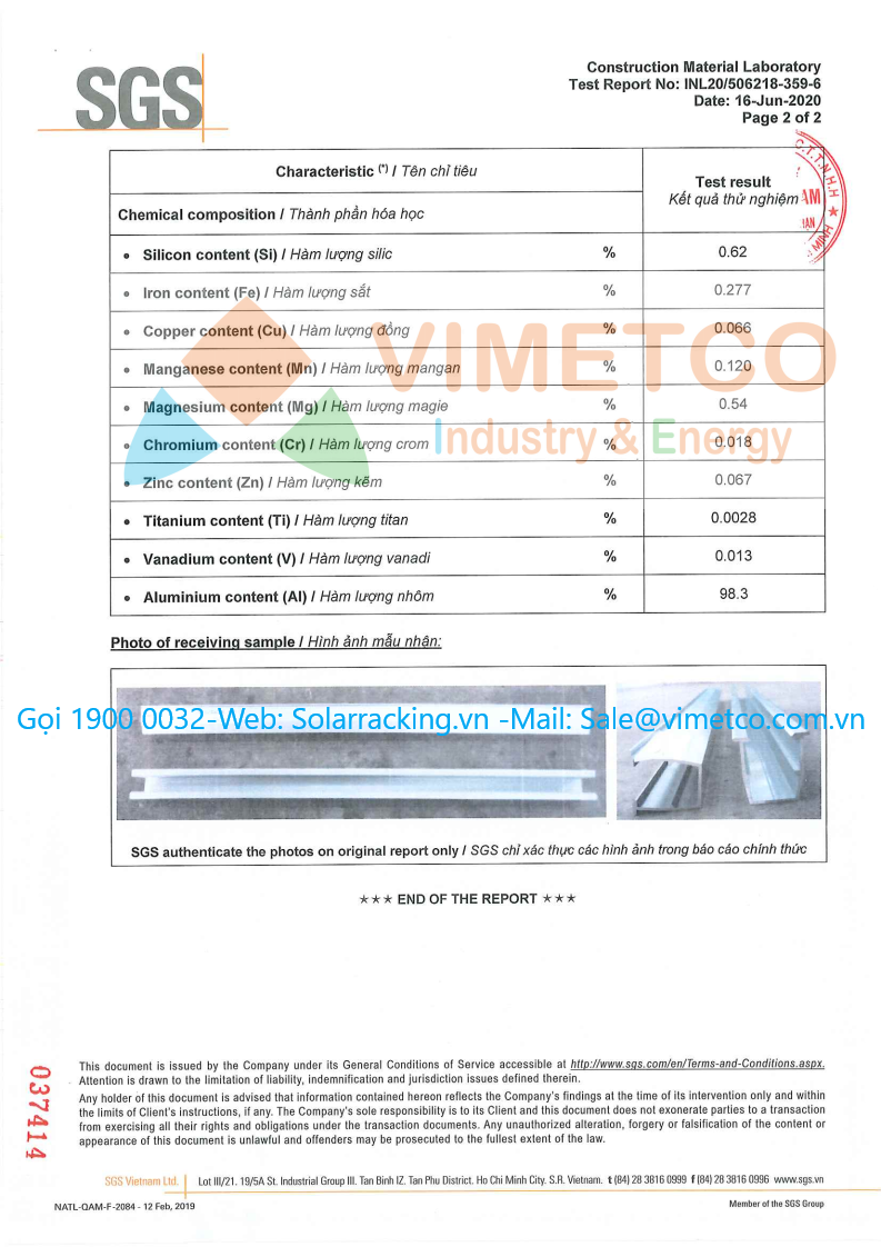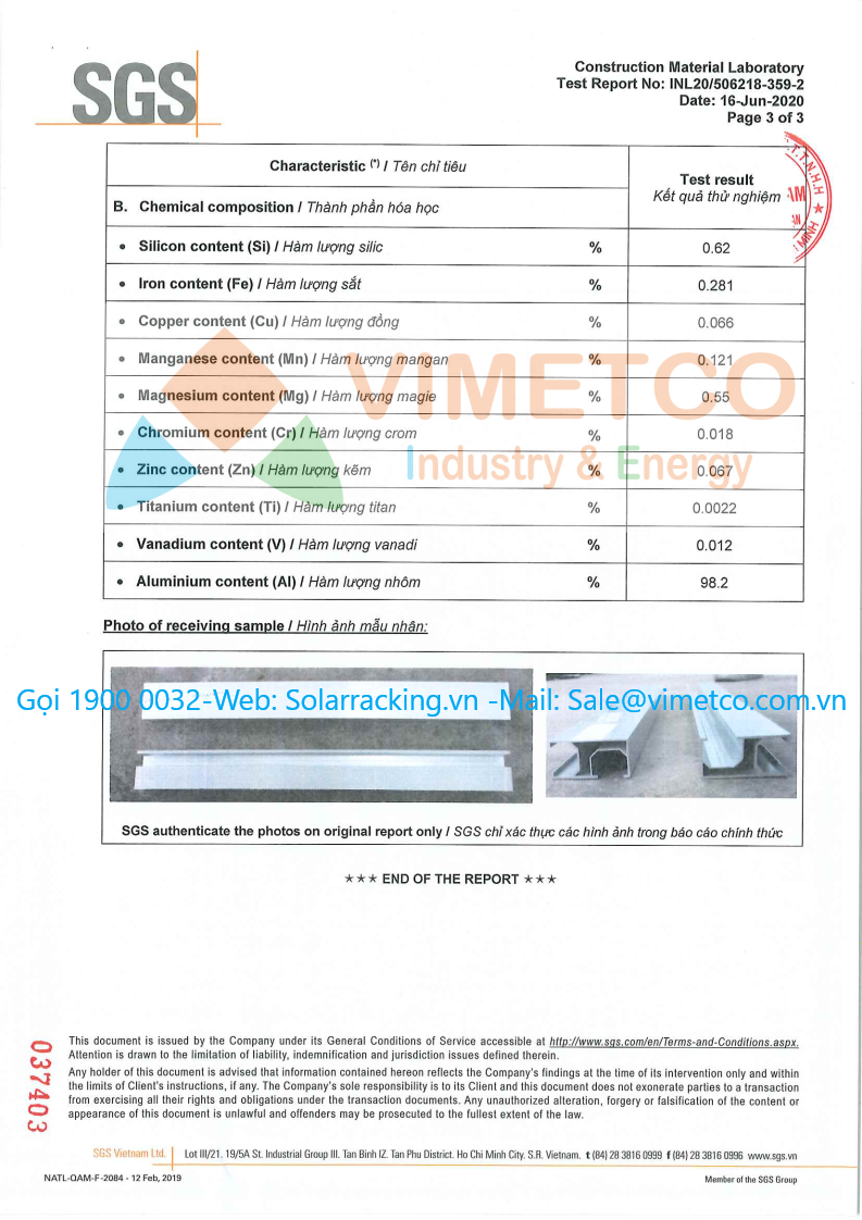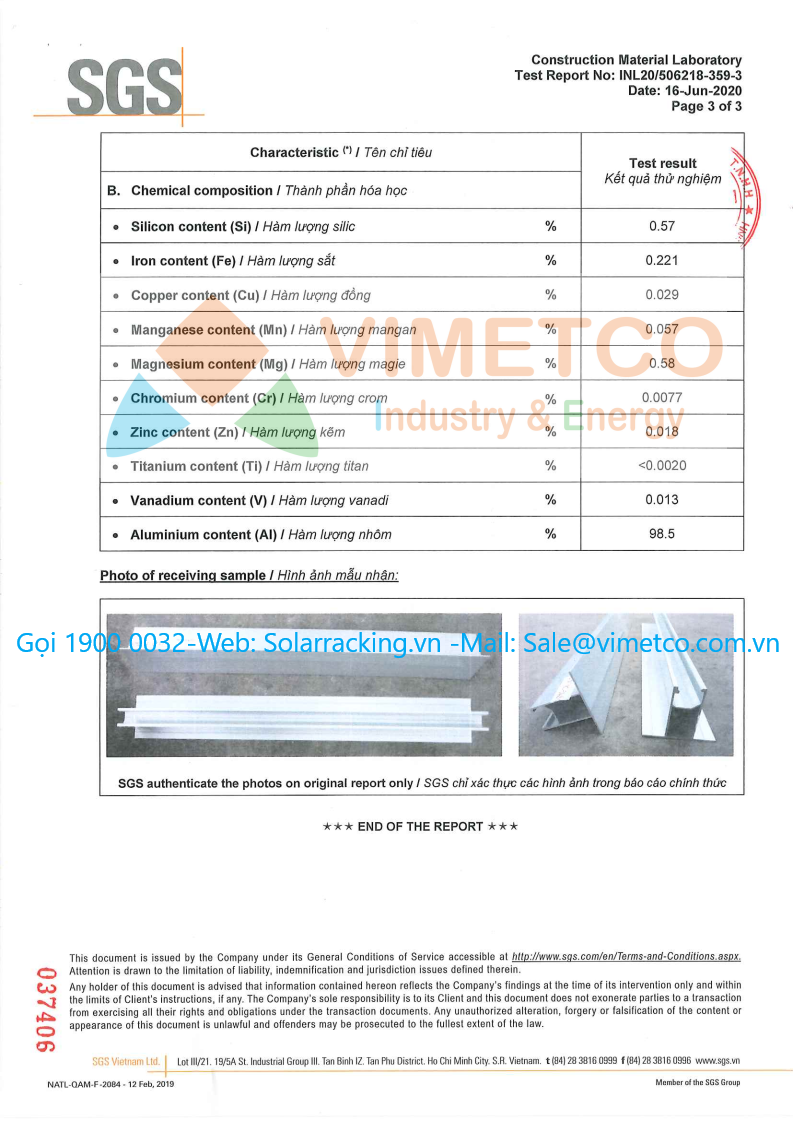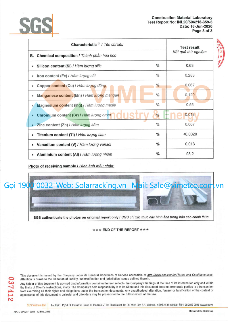 Vimetco Industry & Energy là nhà máy sản xuất chuyên cung cấp kết cấu phụ kiện lắp đặt các hệ thống điện mặt trời cho các dự án lớn nhỏ. Sản lượng cung cấp 120 Mw/Tháng rất mong được hợp tác với các dự án lớn nhỏ. sản phẩm đạt được hầu hết các chỉ tiêu chứng nhận của SGS, TUV: