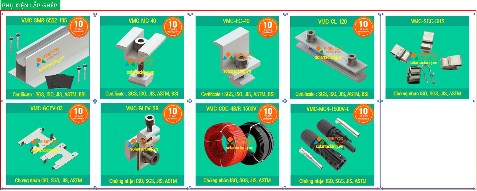 PHỤ KIỆN KHUNG GIÁ ĐỠ TẤM PIN MẶT TRỜI VIMETCO SẢN XUẤT: