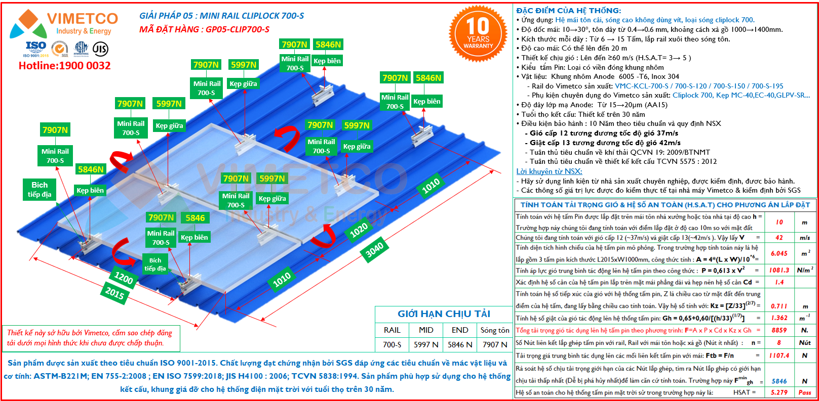 • Thiết kế chịu gió : Lên đến ≥60 m/s (H.S.A.T= 2.0)