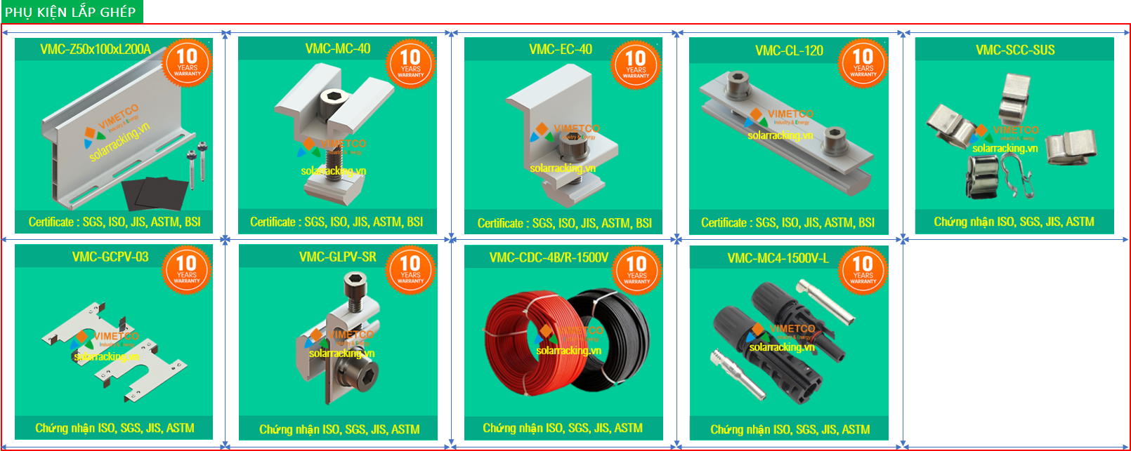PHỤ KIỆN KHUNG GIÁ ĐỠ TẤM PIN MẶT TRỜI VIMETCO SẢN XUẤT: