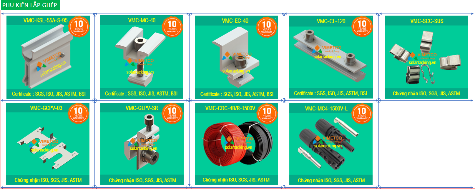 - Phụ kiện chuyên dụng do Vimetco SX: Kẹp MC-40,EC-40,GLPV-SR, GCPV-SR...